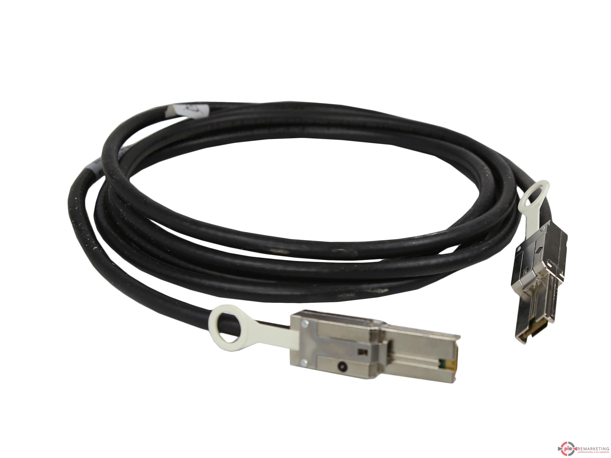 Kabel EMC 038-003-751 Mini-SAS do Mini-SAS o długości 3 metrów to wysokiej jakości, profesjonalny przewód, który gwarantuje niezawodne połączenia dla urządzeń wykorzystujących interfejs Mini-SAS. Przeznaczony głównie do użycia w serwerach i systemach pamięci masowej, ten kabel obsługuje transfer danych o prędkości do 6 Gb/s, co zapewnia optymalną wydajność w przesyłaniu dużych ilości danych. Jego solidna konstrukcja oraz elastyczność sprawiają, że jest idealnym rozwiązaniem zarówno do instalacji stacjonarnych, jak i tymczasowych.
