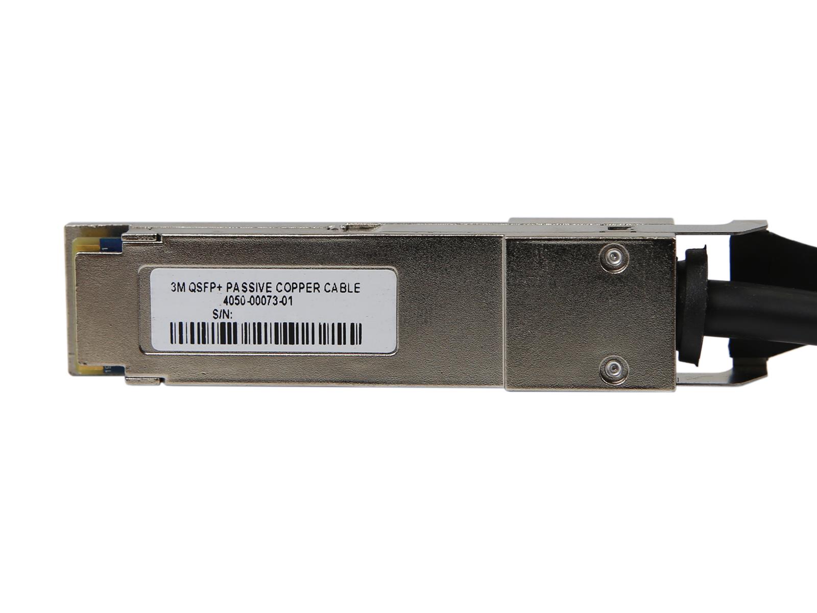 Kabel 4050‑00073‑01 to pasywny przewód miedziany QSFP+ o długości 3 metrów, zaprojektowany do transmisji 40 Gb/s (4 × 10 Gb/s) pomiędzy urządzeniami z portami QSFP+. Przewód typu DAC nie wymaga zasilania aktywnego, cechuje się prostą konstrukcją i kompatybilnością z urządzeniami wspierającymi QSFP+. Zakres temperatur pracy od 0 do 70 °C. Idealny do łączeń wewnątrz szafy rack, połączeń przełącznik–przełącznik lub przełącznik–serwer w odległości do 3 m.