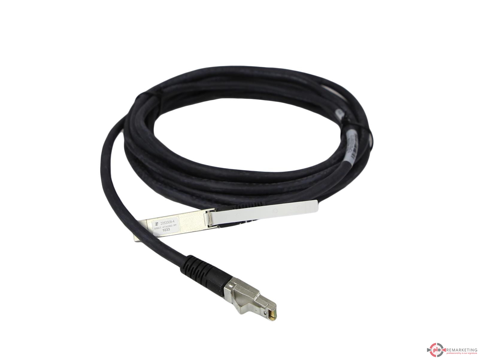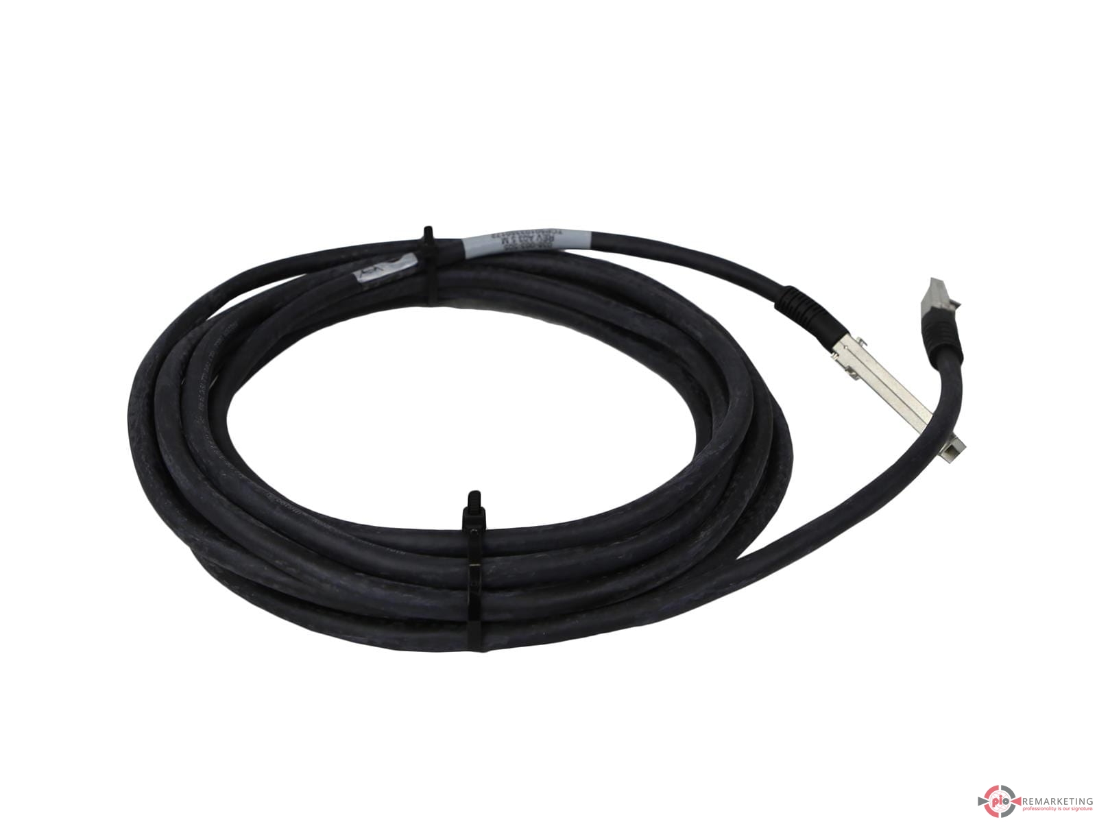 Kabel EMC 038‑003‑505, długości 5 metrów, przeznaczony do środowisk Fibre Channel 4 Gb. Z jednej strony zakończony złączem SFP, z drugiej HSSDC2. Kabel służy do połączeń pomiędzy adapterami SFP a szynami / urządzeniami z interfejsem HSSDC2 — typowy w systemach EMC i pokrewnych infrastrukturach SAN.